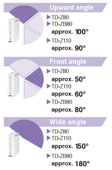 It can be selected 3 way angles, wide angle, front angle, or upward angle.