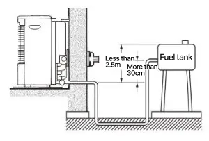【Caution】If no kerosene flows out even when the valve is fully opened, there may not be enough space between the fuel tank and the stove body (approx. 30 cm is necessary), so please check and take appropriate measures.