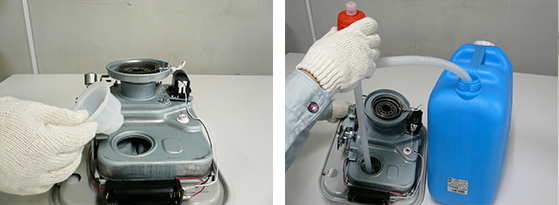 ⑥ Drain the kerosene from the fuel acceptance cap.