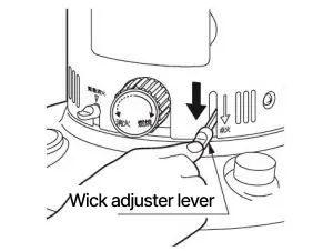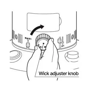 To ignite securely, please operate wick adjuster knob and ignition lever slowly.