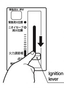 And when it does not ignite, if you push the lever too strongly, it may cause the malfunction of ignition heater or make even more difficult to ignite. Please be careful not to operate ignition lever forcibly.